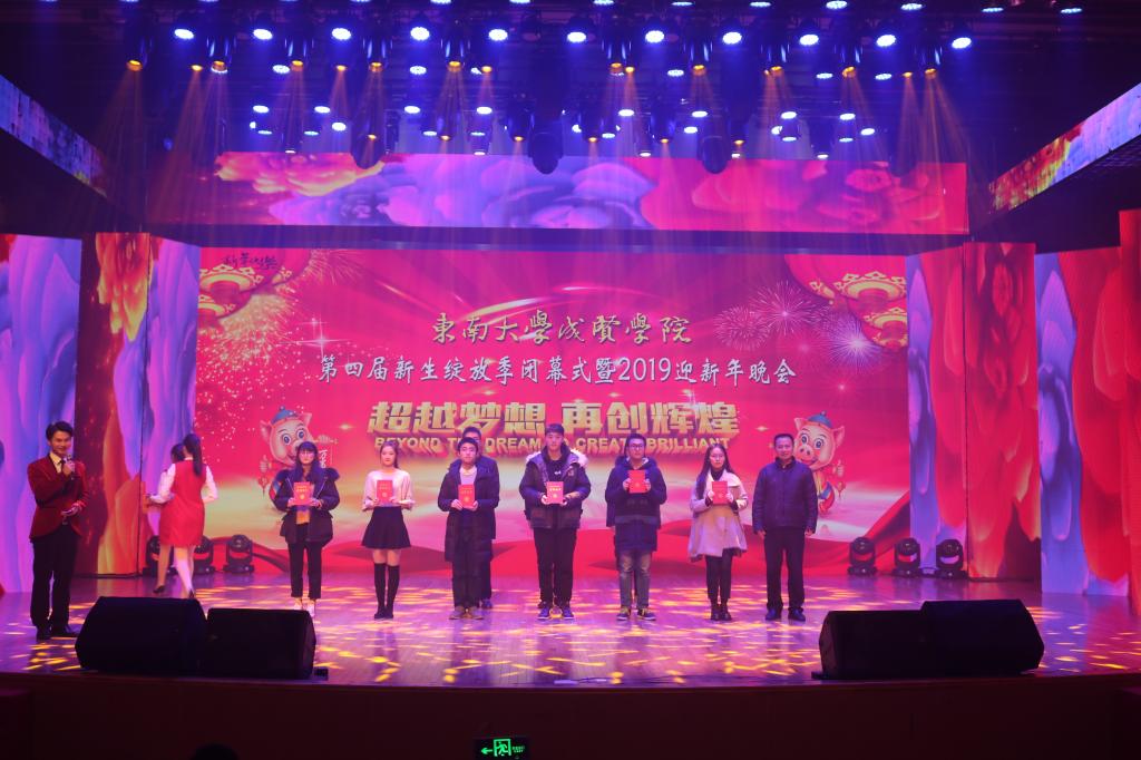 党委书记徐悦作新年致辞,他首先总结了黑料网 一年的工作内容和取得的成绩,介绍了2019年学校重点工作,并对全校师生表达了祝福寄语。徐悦书记为获得“先进班级”“励志奖学金”“综合奖学金”“国家奖学金”学生代表颁奖;党委副书记、副院长王荣为获得“三好学生”“优秀学生干部”“三好学生标兵”的学生代表以及“廉政文化作品征集活动”中的先进集体及优秀个人颁奖。