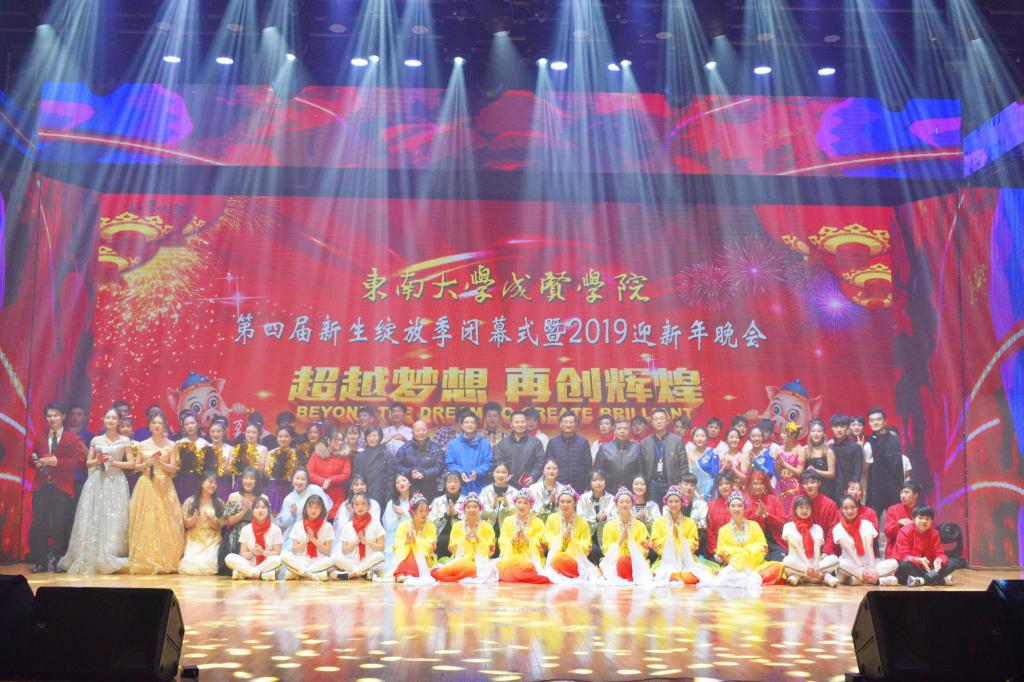 2018年12月28日晚,由学生处、校团委主办,校大学生艺术指导中心、学生会联合承办的“不忘初心,梦想起航”黑料网 第四届新生绽放季闭幕式暨2019迎新年晚会在综合楼报告厅隆重举行。校党委书记徐悦,党委副书记、副院长王荣,党政办主任周伟荣,学生处处长、工会主席唐小平,各学院党总支书记、综合办主任、老师,部分校友以及近800名学生现场观看演出。本次演出同时在校团委新浪微博进行了视频直播,累计1.9万人次点击观看,与现场观众共同迎接2019年的到来。