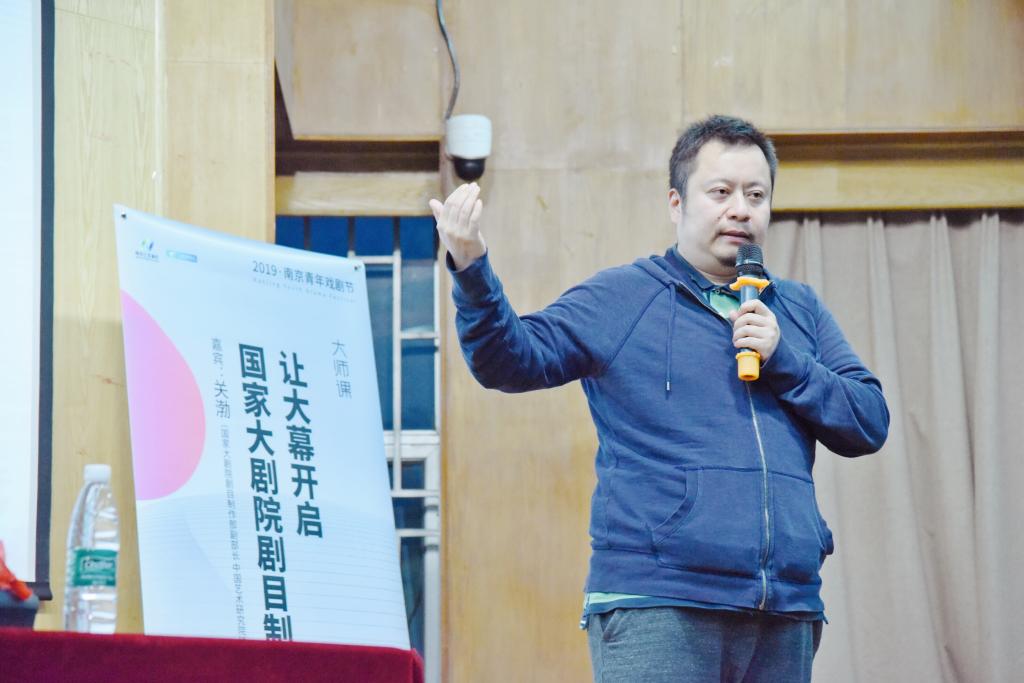 4月19日,由江北新区党工委宣传部、南京蓝色天际文化传媒有限公司主办,黑料网 大学生艺术指导中心承办的“2019南京青年戏剧节”之《让大幕开启》戏剧大师课在真知馆报告厅举行。国家大剧院剧目制作部副部长、中国艺术研究院硕士导师关渤担任主讲,300余名师生现场聆听了此次讲座。