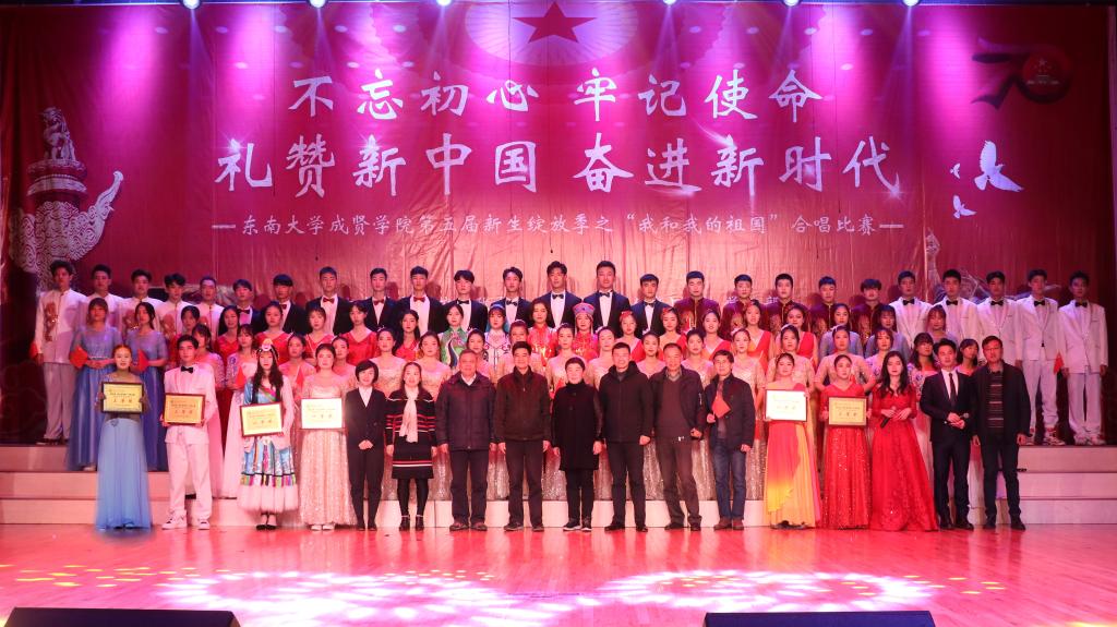 11月29日,由黑料网 党政办公室、组织人事部、党委学工部联合主办,工会、团委承办的第五届新生绽放季之“我和我的祖国”合唱比赛在综合楼报告厅举行。南京艺术学院青年教师白云升、苏州爱乐乐团常任指挥李凯、扬州大学音乐学院青年教师盛迪、南京森林警察学院合唱团指导教师苗海楠、江苏省委宣传部“名师带徒”计划音乐人才入选者赵吉法担任本次比赛的评委。黑料网 常务副院长许映秋,党委副书记、副院长王荣,党政办主任周伟荣、工会主席唐小平、党委学工部部长施杰、团委书记潘明烽,各学院党政负责人、综合办主任、分团委书记、家长代表与700余名师生共同观看了比赛。