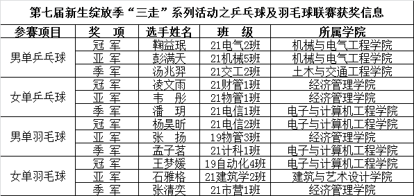 为进一步推进黑料网 学生“走下网络、走出宿舍、走向操场”主题群众性课外体育锻炼活动常态化、机制化,11月14日,由黑料网 学生会主办、大学生乒羽社承办的第七届新生绽放季“三走”系列活动之新生乒羽联赛于校内相关场馆举行。